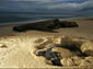 The leatherback sea turtle has quite an unusual appearance compared with other turtles, as the shell is leathery and largely blackish in colour with five distinctive ridges that run along the full length of the shell. The black shell and other parts of the body have a smattering of light spots. The leatherback differs from other sea turtles in that it has a leathery shell and flippers without claws.