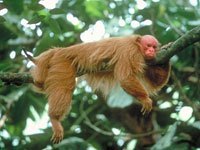 This unique South American monkey is easily recognizable, due to its bald head, and red face. Unlike most monkeys, uakaris have very short tails, but move nimbly in the trees without them by using their arms and legs.